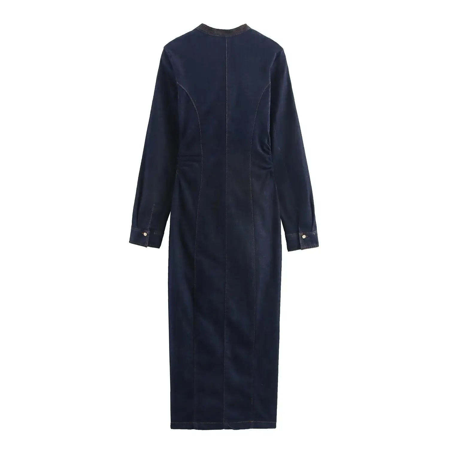 European and American style new temperament slim fit V-neck denim long-sleeved dress
