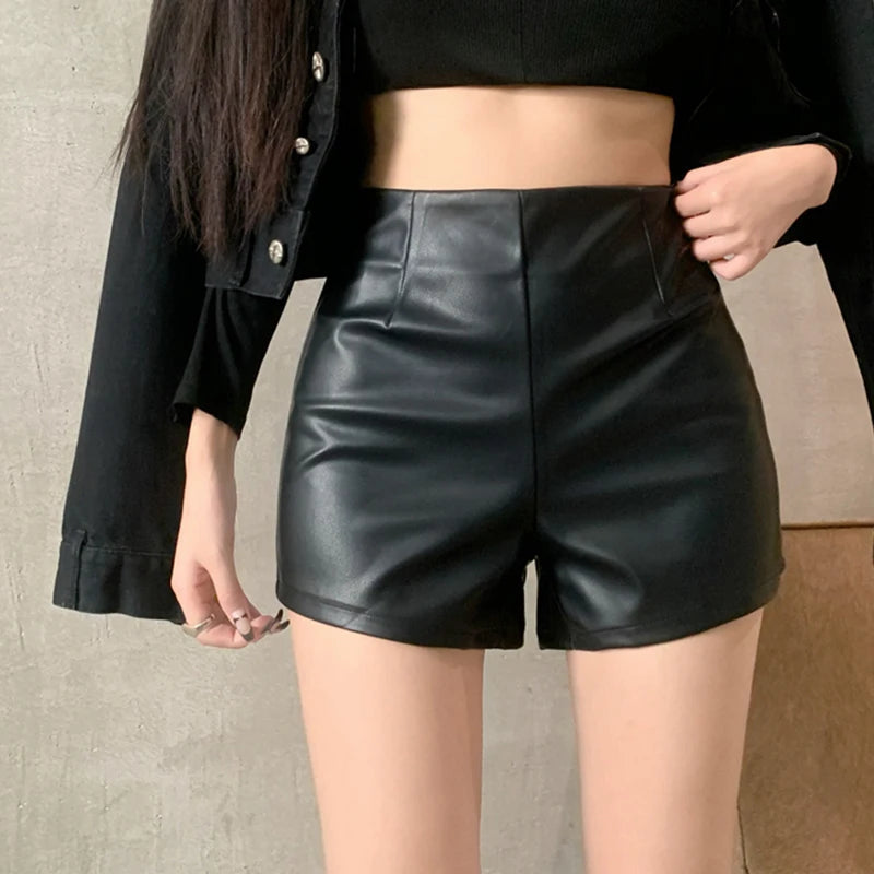 Women's Shorts Sexy Fashion Spring Autumn Black Straight Bodycon Lederhosen