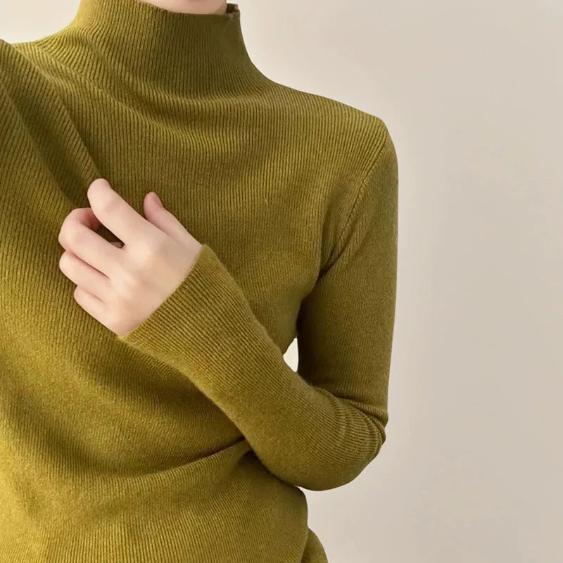 Women's Half-High Collar Knitted Sweater Solid Color Casual Long Sleeve Basic Pullover All-Match Slim Elastic Bottoming Knitwear