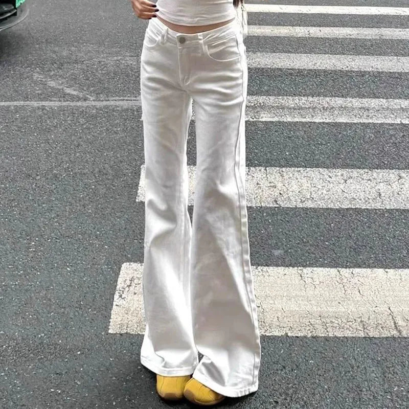 Lady White Baggy Flared Jeans Pants Female Hot Sale Daily Straight Leg Denim Trousers Girls Classic Korean High Waist Pants