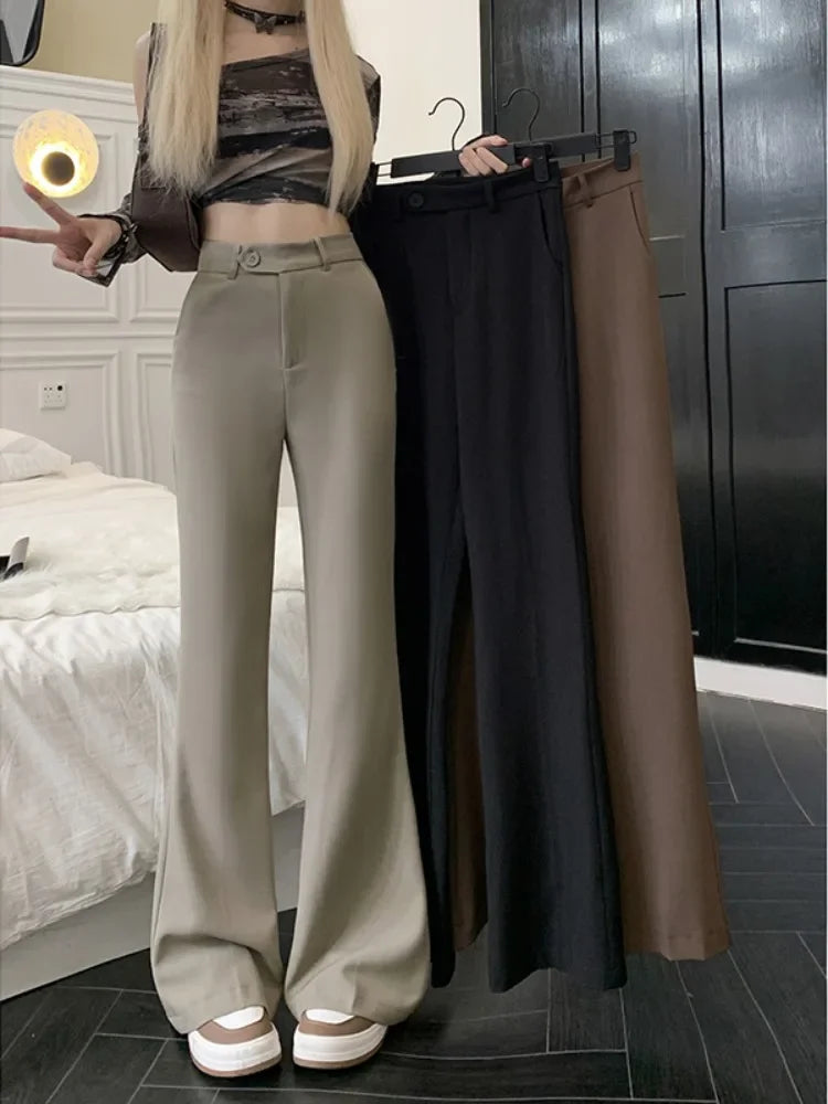 Office Ladies Casual Suit Wide Leg Pants Women Elegant 2025 Spring Summer Fashion Solid Color High Waist Loose Outwear Trousers