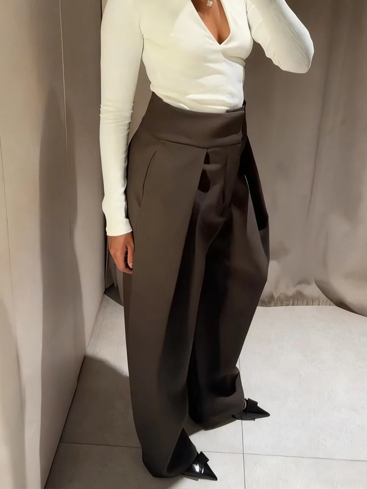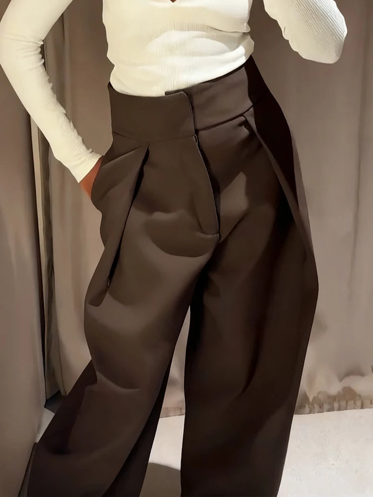 Fashion Baggy Pleated Long Pants For Women Elegant Loose High Waist Wide Leg Trouser Autumn Office Lady Chic Street Suit Pant