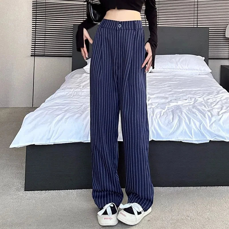 Gray Striped Suit Pants for Women French High-end Loose Casual Wide-leg Pants Ins Trendy Niche Straight Trousers