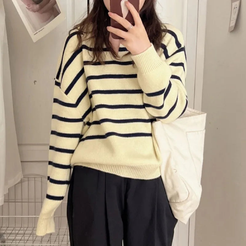 Women Sweater 2023 Autumn Winter Knitted Pullovers V-neck Bottoming Shirts Stripes Jumpers Long Sleeve Female Basic Tops