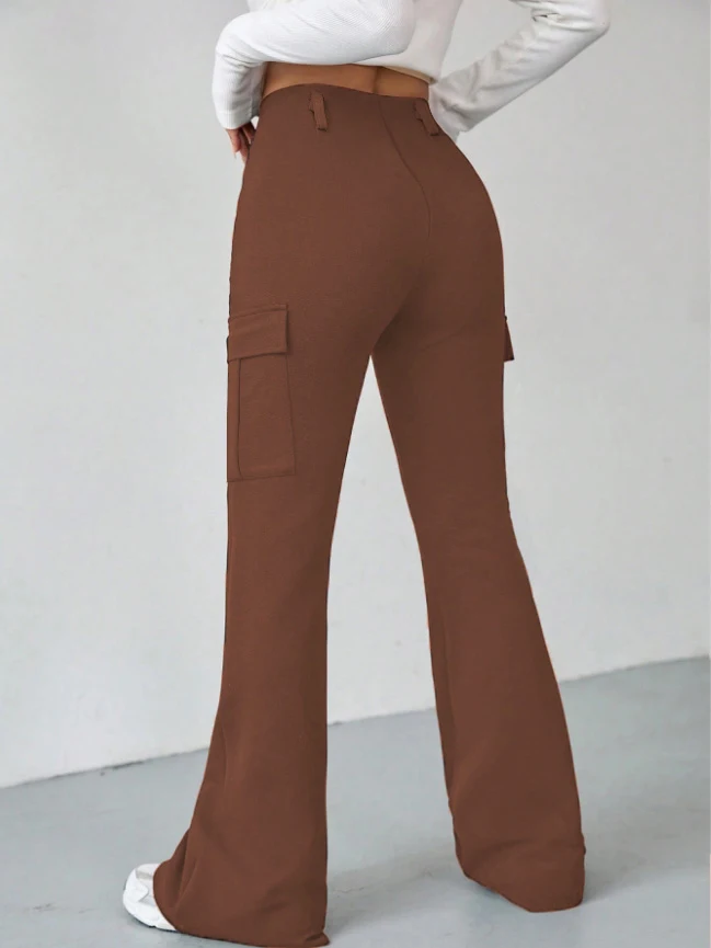 Versatile and chic, these solid pattern flare pants are ideal for any casual occasion.