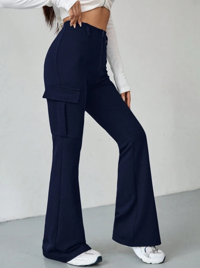 Elevate your style with our high waist flare pants, offering a flattering silhouette and comfortable fit.